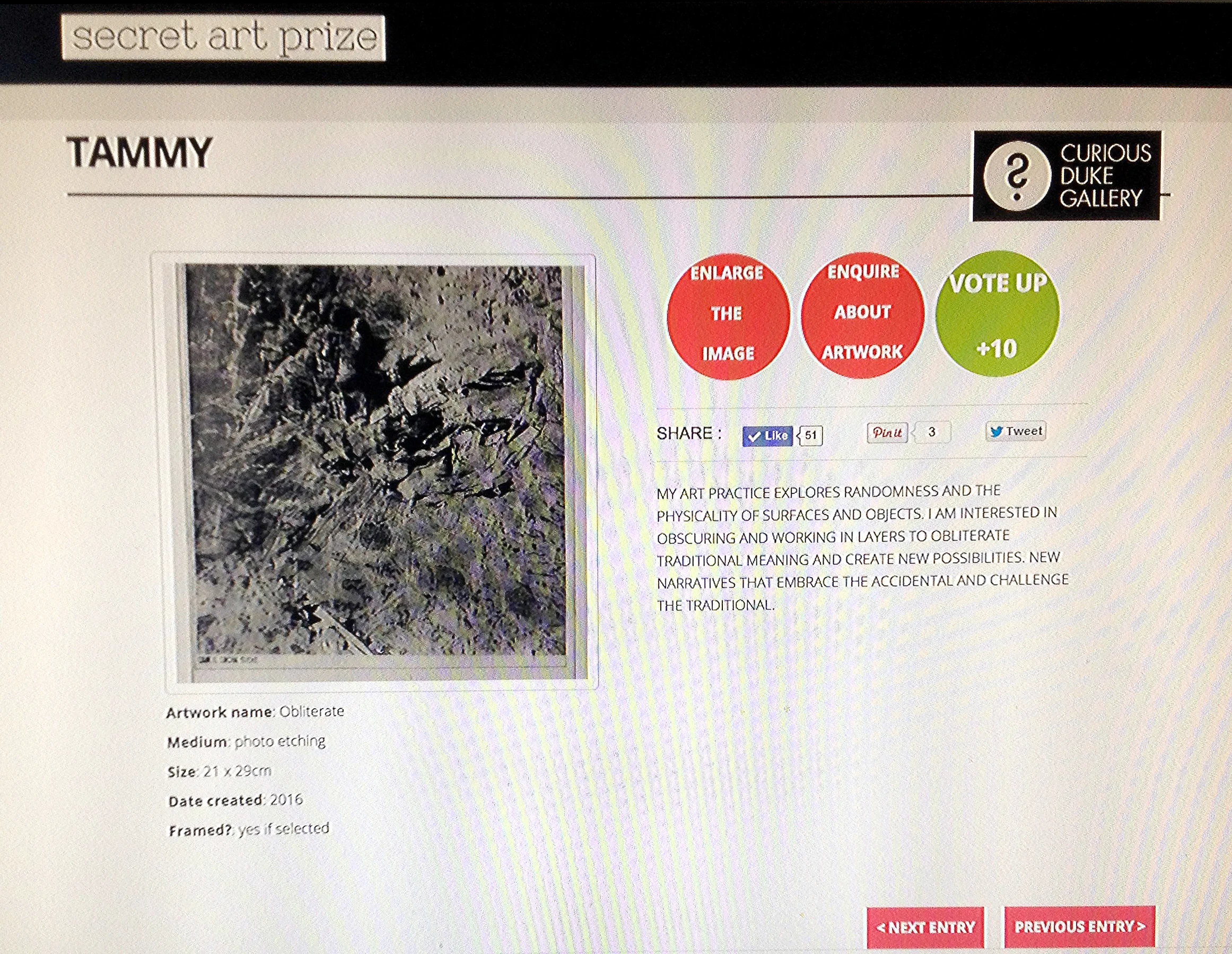 Selected for the Secret Art Prize 2016! Tuesday, August 9, 2016 10:30 PM Sunday, August 28, 2016 11:30 PM Google Calendar ICS